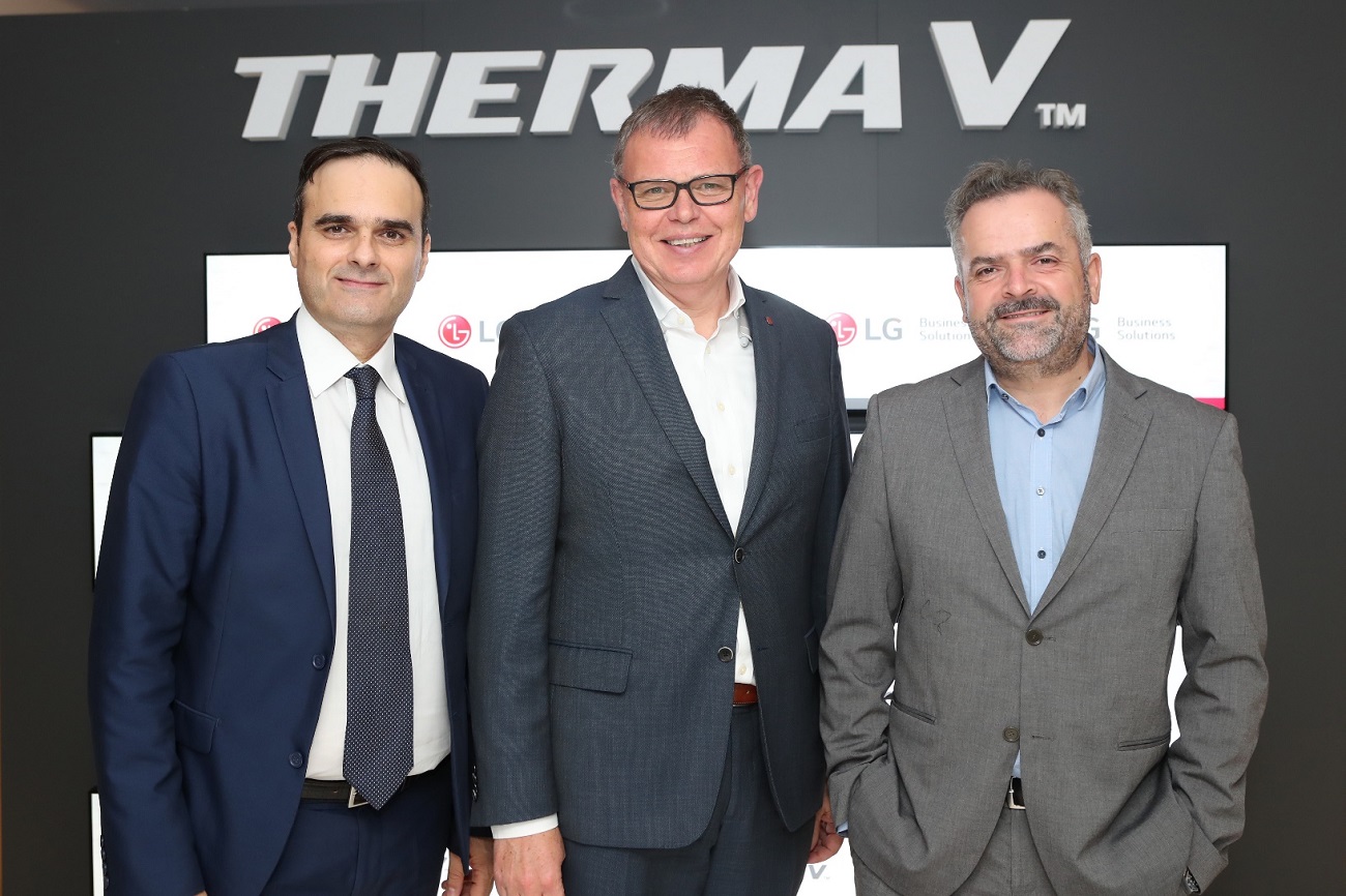 Από αριστερά: Ο κ. Γιάννης Μαντάς, Διευθυντής του τμήματος Business Solutions της LG Electronics Ελλάδος, ο κ. Peter Verkempynck, Αντιπρόεδρος του τμήματος Business Solutions της LG Electronics Ευρώπης και ο κ. Άρης Κουτελός, Γενικός Διευθυντής της LG Electronics Ελλάδος, Photo © LG Electronics Hellas