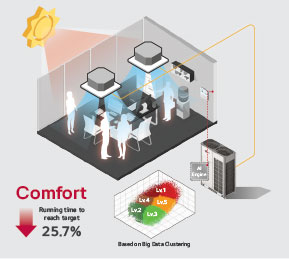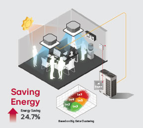 Το Multi V i αξιοποιεί αυτή τη βάση και την εξελίσσει, ενσωματώνοντας μία AIEngine που λειτουργεί ως κεντρικός «εγκέφαλος» του συστήματος, λαμβάνοντας αποφάσεις σε πραγματικό χρόνο. Η AIEngine του MultiVi συλλέγει δεδομένα από το σύνολο των εσωτερικών /εξωτερικών μονάδων και τους αισθητήρες θερμοκρασίας, υγρασίας και τα επεξεργάζεται με αλγορίθμους μηχανικής μάθησης. Αντί να βασίζεται σε προκαθορισμένες ρυθμίσεις, το σύστημα: