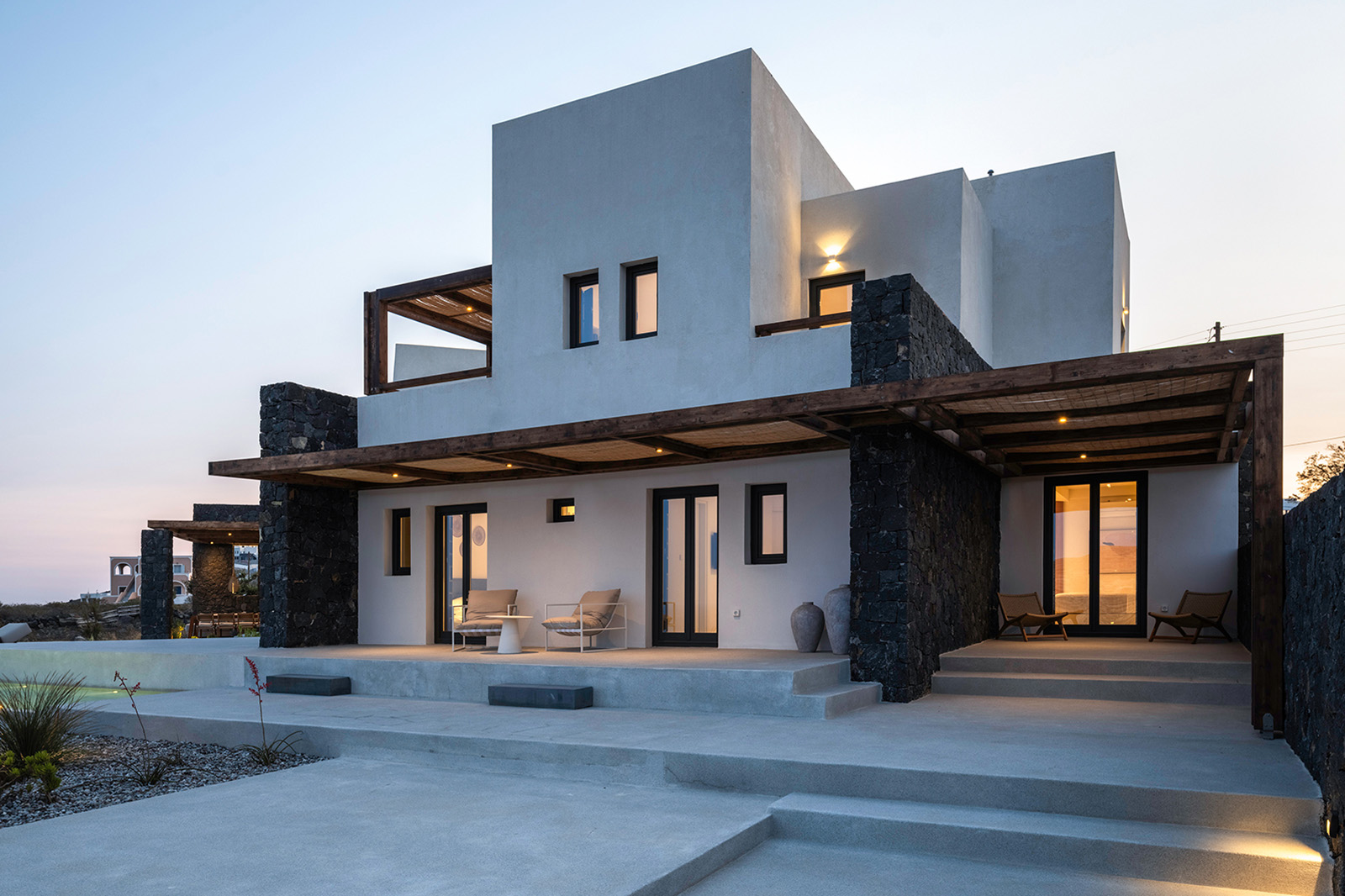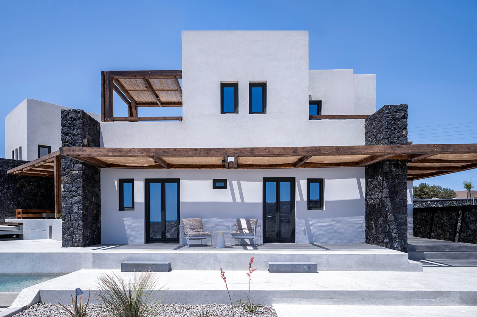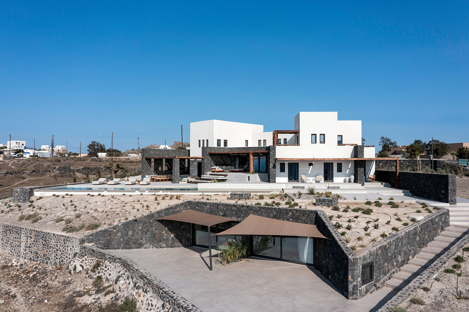 Στη γαλήνια πλευρά της Σαντορίνης, μια κατά βάση αδιάφορη κατασκευή από την οικοδομική έκρηξη των αρχών του 2000 επανασχεδιάζεται με καθαρότητα και αυτοσυγκράτηση. Δουλεύοντας με τον υπάρχοντα φέροντα οργανισμό και όχι ενάντια σε αυτόν, οι Μαρίνα Καραμαλή και Κατερίνα Καραγιάννη του γραφείου KKMK Architects μεταμορφώνουν την κατοικία σε μια σύνθεση από πέτρα, γεωμετρία και μελετημένες μεταβάσεις.