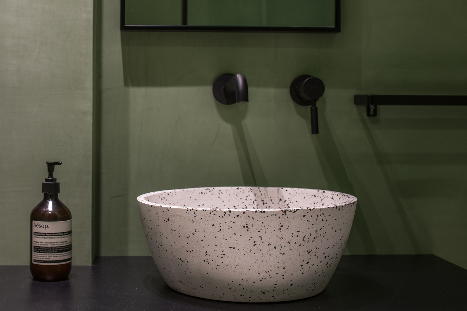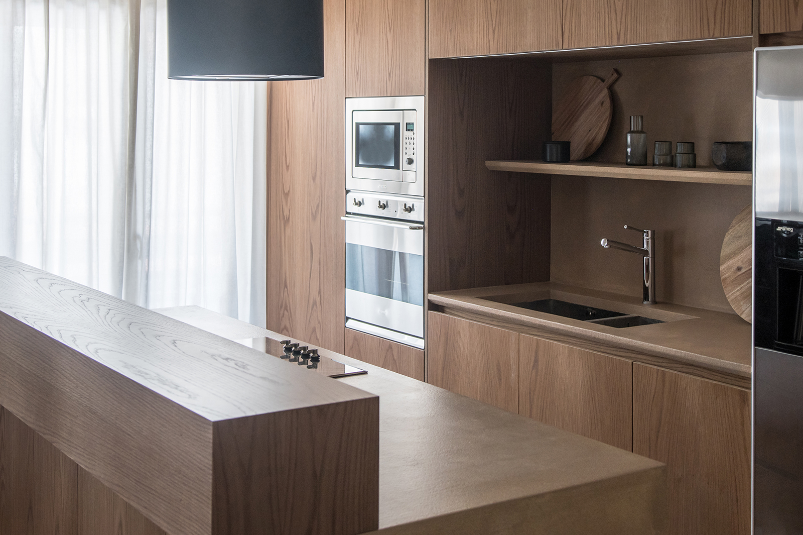 “Η σχεδιαστική φιλοσοφία βασίστηκε στην χρήση φυσικών υλικών όπως ξύλο δρυς σε όλες τις custommade κατασκευές και φυσικά κονιάματα της εταιρείας Kourasanit”.