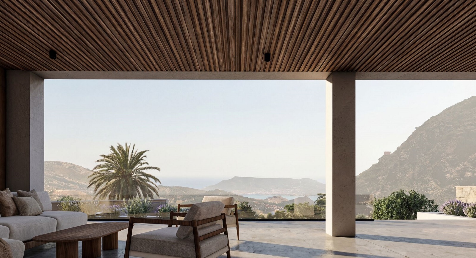 EFTEKTON Architects & Engineers designed Casa Con Fortezza, a new single-storey residence, located in the settlement of Aperi, Karpathos, on a 3.300 m² plot with a gentle slope and clear views toward the bay of Pigadia. From the beginning of the design process, the team set three main goals: i) to maintain open views and achieve smooth integration with the natural landscape, ii) to make practical use of the site’s slope so the building fits naturally into the terrain and iii) to respect and include the existing two-storey traditional building in the new design (often referred to as “the fort”).