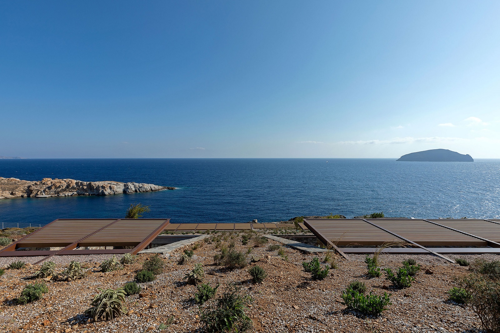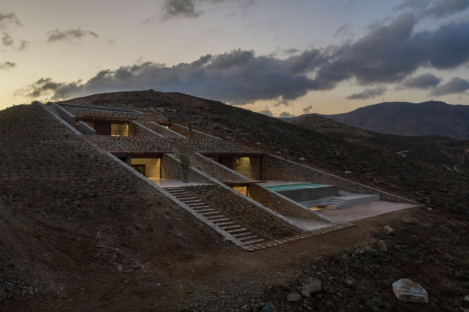 Project title: nCAVED House, Project type: Vacation residence, Location: Ag. Sostis – Serifos Island – Cyclades – Greece, Architectural Design: MOLD architects, Lead Architect: Iliana Kerestetzi, Consultant Architect: Manos Kerestetzis, Design Team: Konstantinos Vlachoulis – Michail Xirokostas, Structural Engineer: Studio 265, Mechanical Engineer: TEAM M-H, Lighting Design: Nikos Adrianopoulos, Construction: MOLD architects & Thanos Vittas, Site supervision: MOLD architects, Site area: 6.000 m², Gross area: 360 m², Year of completion: 2020, Text description: MOLD architects, Photographer 1: Yiorgis Yerolymbos, Photographer 2 – Video: Panagiotis Voumvakis