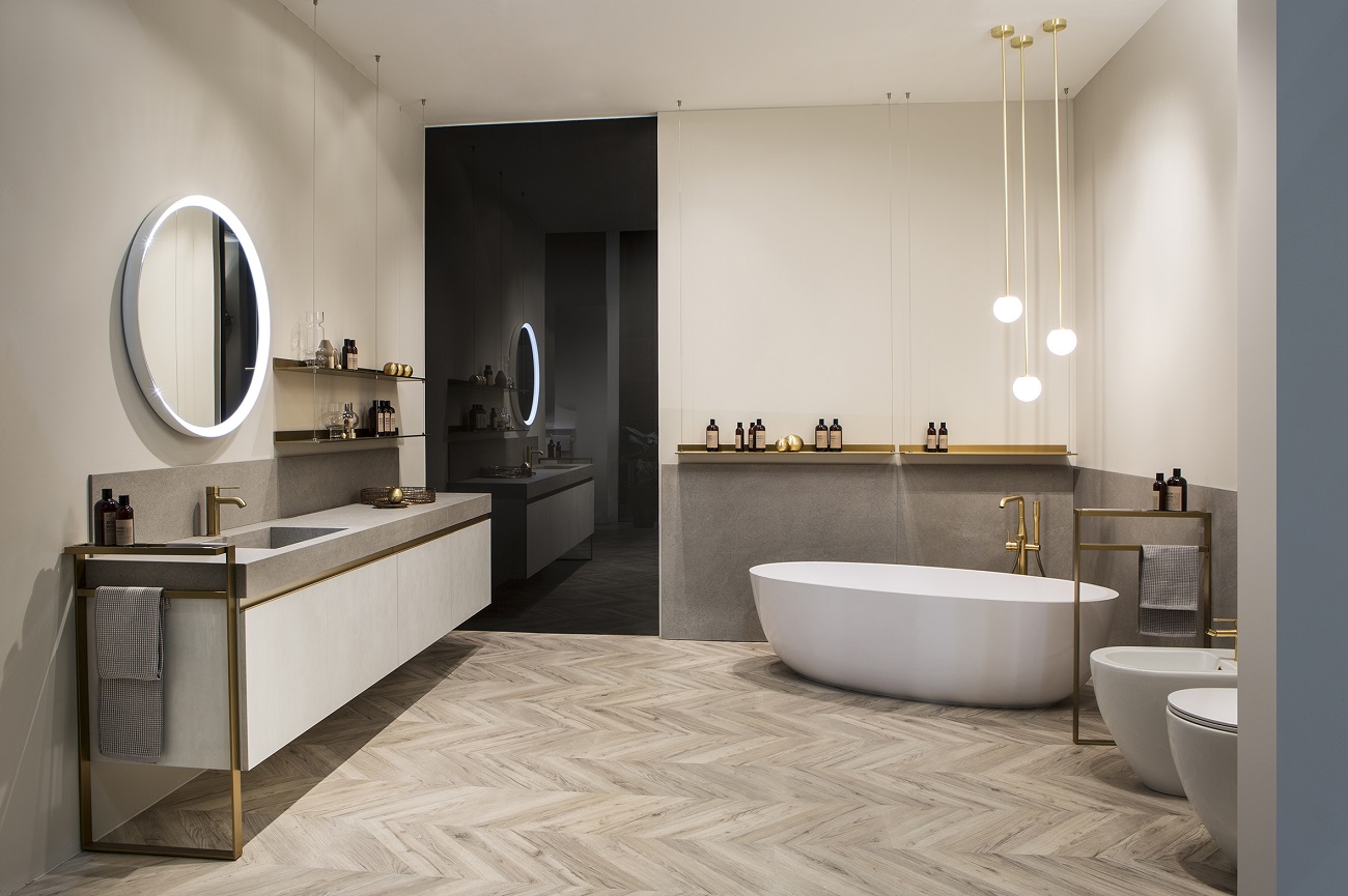 The wall-mounted base unit and the dedicated line of accessories – which includes taps, shelves and towel rails – complete the collection to ensure maximum stylistic consistency. The recessed grip profiles and the door profiles can be produced to match the colour of the taps, in brass, white, and stainless steel finish. DeLinea: poetic simplicity and maximum functionality for an extraordinary Made in Italy offering.