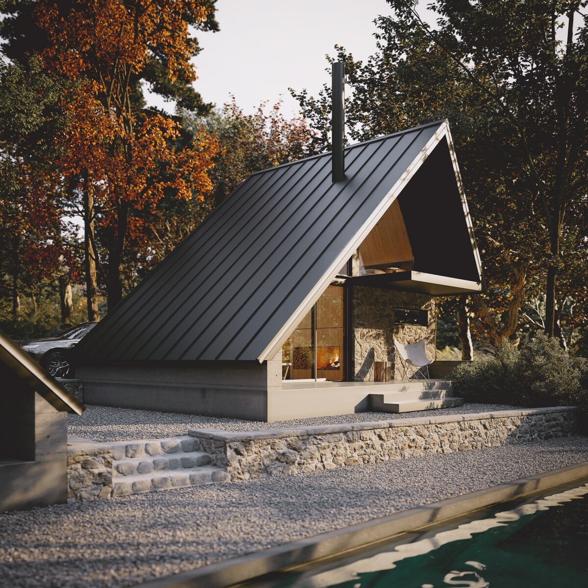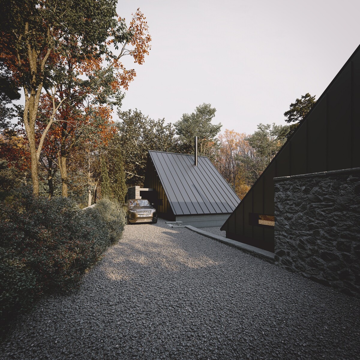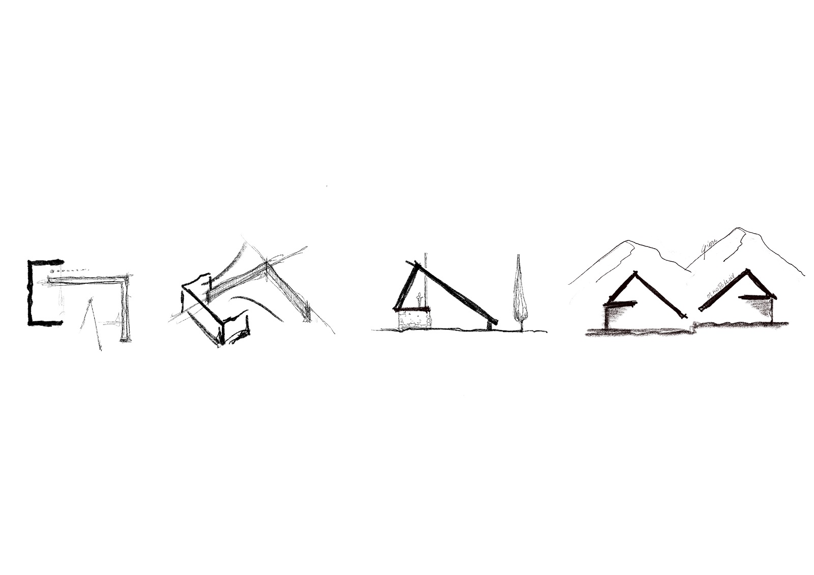 H συνθετική ιδέα του project στράφηκε σε γνώριμες μορφές όπως αυτής της σκηνής στο βουνό και της πέτρινης καλύβας με την τυπική σκεπή. Έτσι το στοιχείο της στέγης εντείνεται, σχεδόν από το έδαφος υψώνεται και κάτω από αυτή δημιουργείται στο σύνολο του ο χώρος της κατοικίας. Παράλληλα, τα παραδοσιακά υλικά, αυτά της πέτρας και του ξύλου, έρχονται σε διάλογο με την μεταλλική στέγη και το ανεπίχριστο σκυρόδεμα επαναπροσδιορίζοντας την παραδοσιακή κατοικία του χωριού στο σήμερα.