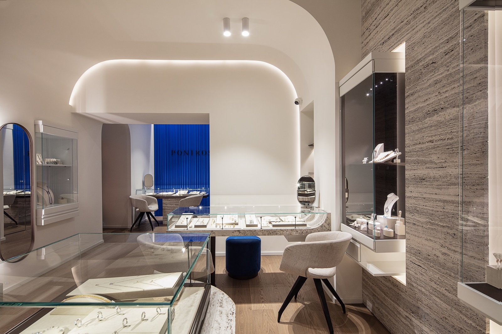 Στο νησί της Μυκόνου σχεδιάστηκε από το αρχιτεκτονικό γραφείο G2lab, ένας ιδιαίτερος χώρος υψηλής αισθητικής για να φιλοξενήσει το κατάστημα του οίκου κοσμημάτων PonirosJewellery. Η όψη του καταστήματος επιλέγεται να είναι λευκή σε κυκλαδίτικο στυλ, ενώ η σχεδιαστική φιλοσοφία βασίστηκε στην δημιουργία μιας λιτής αναζωογονητικής ατμόσφαιρας, εναρμονισμένης με την αρχιτεκτονική του νησιού.