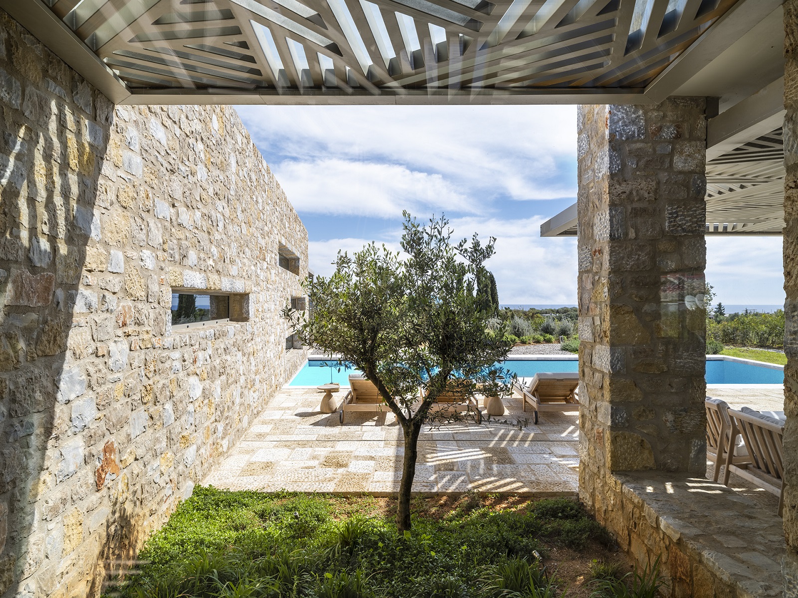 Τίτλος έργου: Villas in Olive Grove, Τυπολογία: Πολυτελείς τουριστικές κατοικίες | Αρχιτεκτονικός σχεδιασμός, Τοποθεσία: Navarino Residences – Μεσσηνία, Αρχιτεκτονική μελέτη: Potiropoulos+Partners, Κείμενο παρουσίασης: Potiropoulos+Partners, Φωτογραφίες: Γιώργης Γερόλυμπος