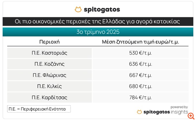 Εξετάζοντας τα πιο οικονομικά σημεία της χώρας, οι Π.Ε. Καστοριάς, Κοζάνης, Φλώρινας, Κιλκίς και Καρδίτσας αποτελούν τις 5 πιο οικονομικές επιλογές για αγορά κατοικίας κατά το 3ο τρίμηνο του 2025.