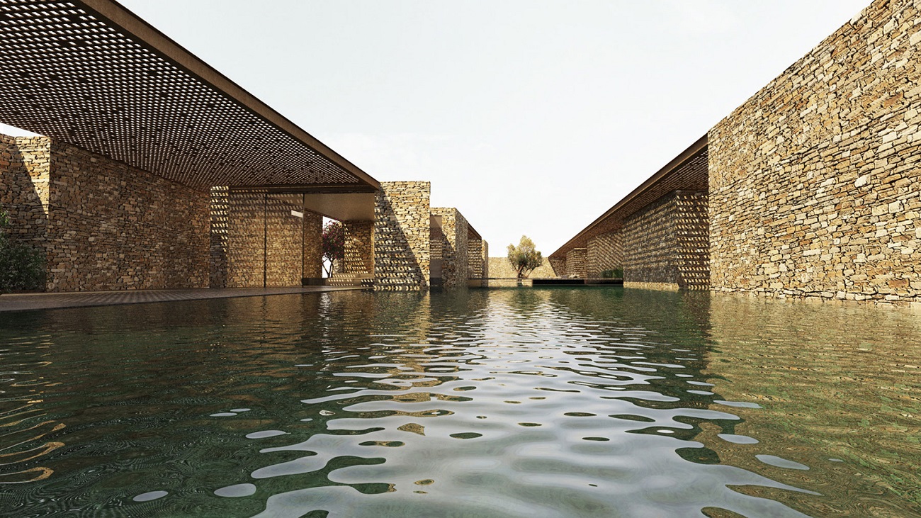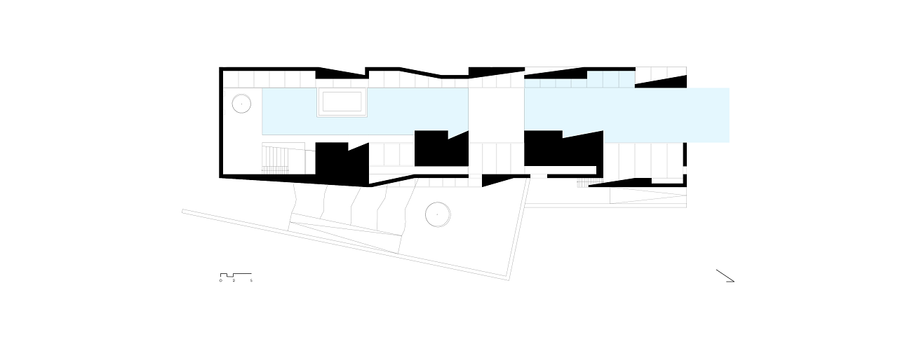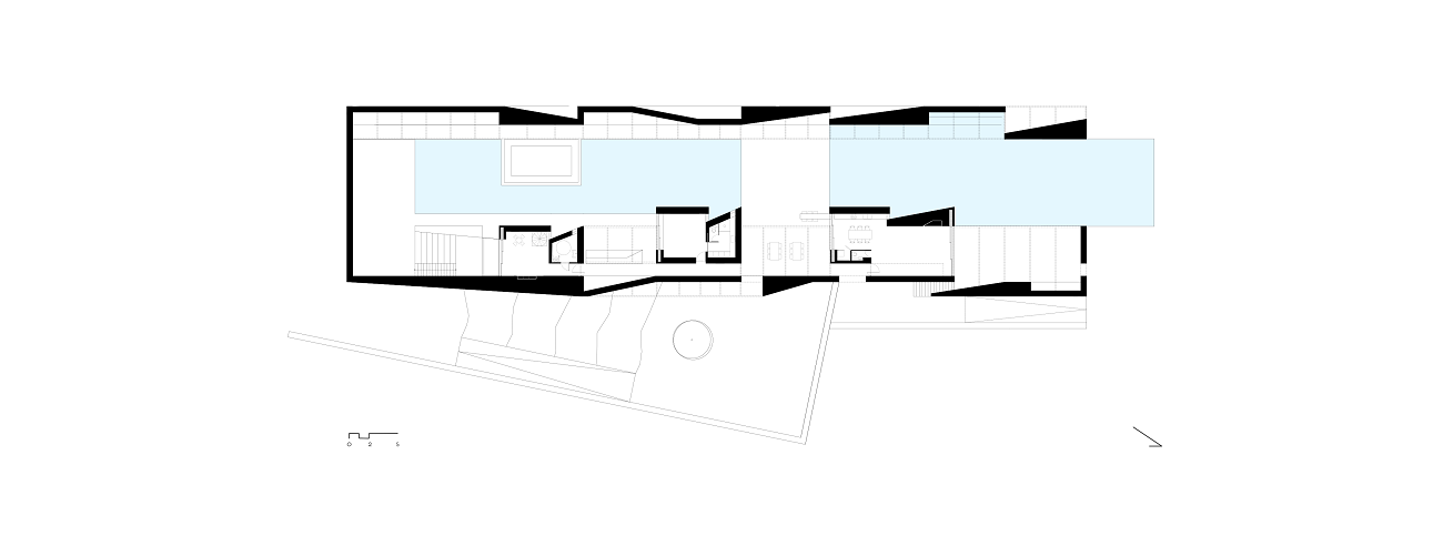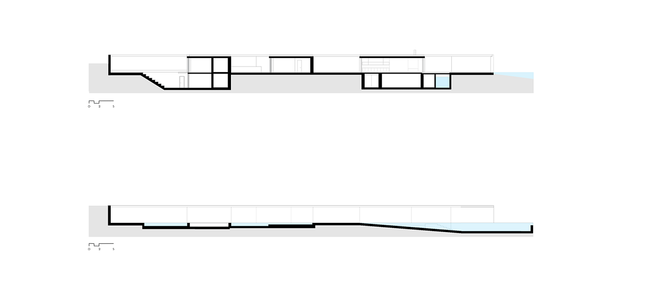 With this strict limit set by the pit, architects are able clearly direct the gaze to the view, to bypass all the intermediate elements (a road, the soil and some scattered buildings) and ultimately unify the artificial water element with the sea.