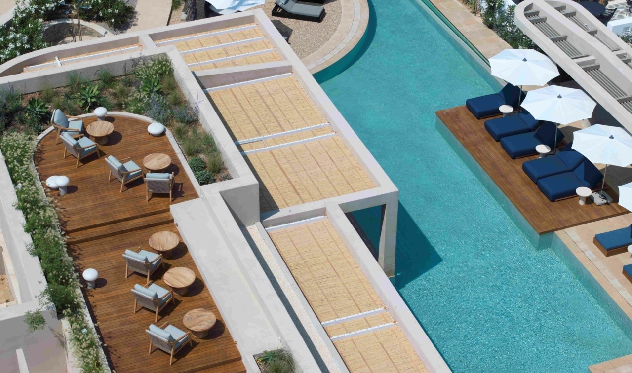 Το ξενοδοχείο απλώνεται γύρω από μια πισίνα μήκους 55 μέτρων, η οποία έχει σχεδιαστεί έτσι ώστε να δημιουργεί την αίσθηση ένωσης με τη θάλασσα σαν μία όαση χαλάρωσης για τους επισκέπτες.