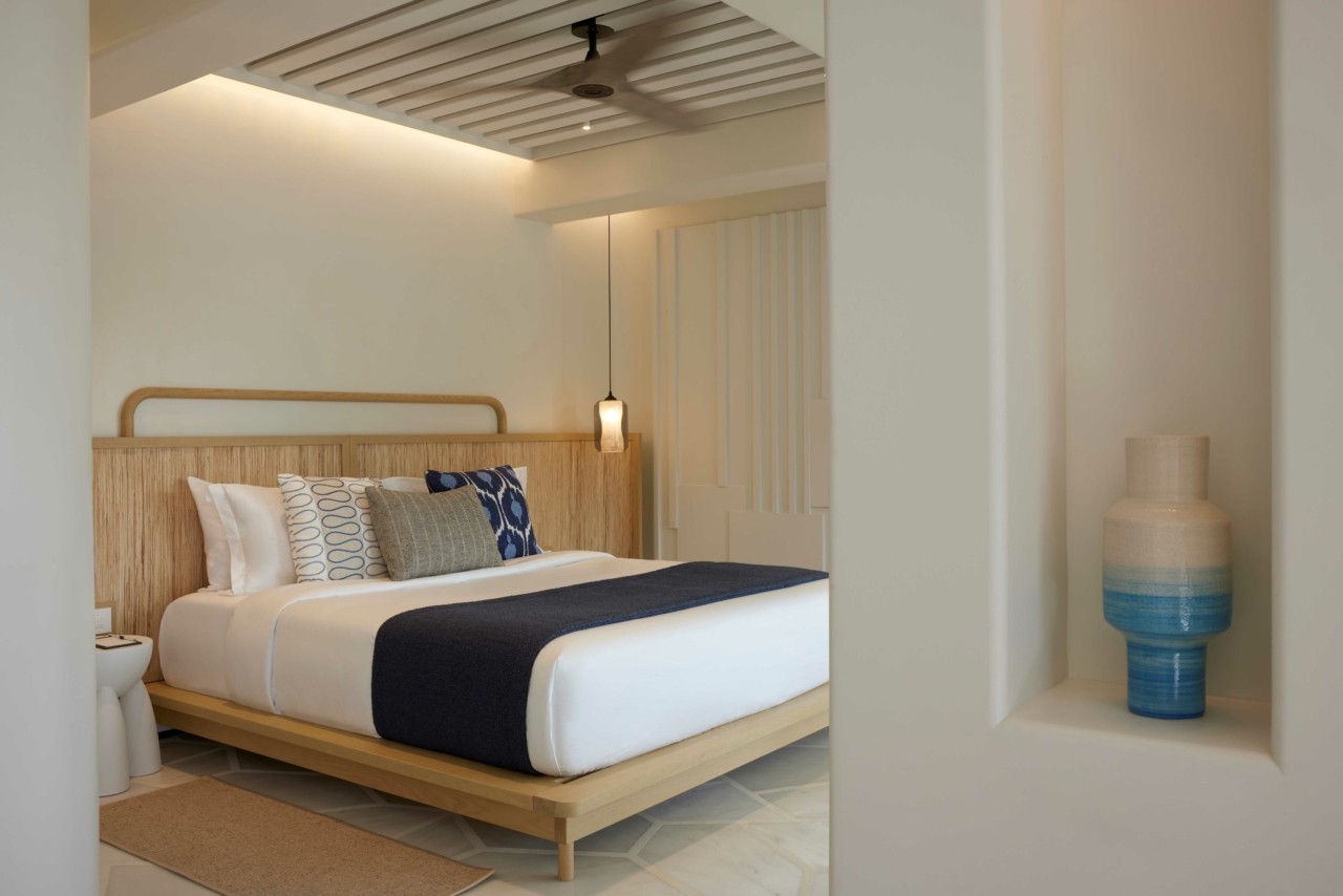 Με δυναμικότητα 38 δωματίων, συμπεριλαμβανομένων επτά πολυτελών σουιτών, καθεμία με ιδιωτική plungepool, καθώς και της “TheAvantMarPremiumSeaViewSuite”, η διαμονή στο Avant Mar αντικατοπτρίζει την αυθεντική κυκλαδίτικη φιλοξενία με γνώμονα την απόλυτη άνεση για τους επισκέπτες. Όλα τα δωμάτια στο Avant Mar έχουν σχεδιαστεί με ιδιαίτερη προσοχή στη λεπτομέρεια με κύριο υλικό το λευκό μάρμαρο ως χαρακτηριστικό ελληνικό στοιχείο, ενώ η κυριαρχία των ανοιχτών χρωμάτων και των φυσικών περασμάτων του φωτός και του αέρα στους εσωτερικούς χώρους δημιουργούν μια ατμόσφαιρα χαλάρωσης και ευεξίας ως συνέχεια της φυσικής παλέτας του τοπίου της Νάουσας. Κάθε στοιχείο εναρμονίζεται με το νησί, όπως το δάπεδο, που τοποθετείται τόσο στα δωμάτια όσο και στους κοινόχρηστους χώρους του ξενοδοχείου και το οποίο αποτελεί μία σύγχρονη εκδοχή του παραδοσιακού πλακόστρωτου που συναντάται σε οικισμούς του νησιού, αυτή τη φορά με ακανόνιστες πλάκες λευκού μαρμάρου και υπόλευκους αρμούς.
