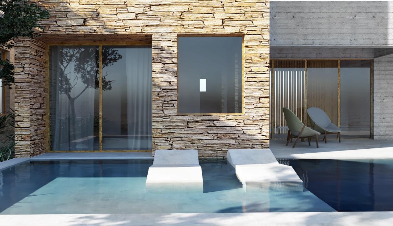 Finally a palette of traditional and natural materials, such as the local stone and wood, are applied in harmony with modern materials, such as bare concrete, bridging the gap between versatile architecture and contemporary life.